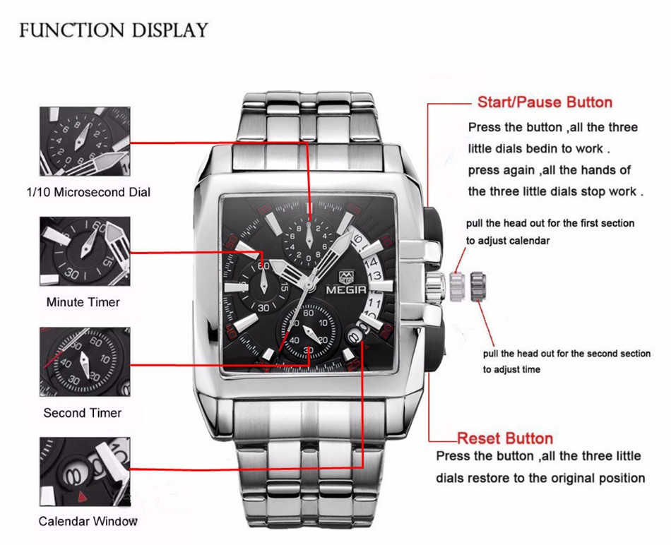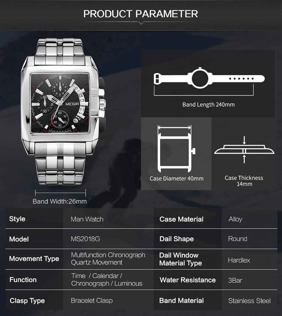 Montre MEGIR Carré en acier