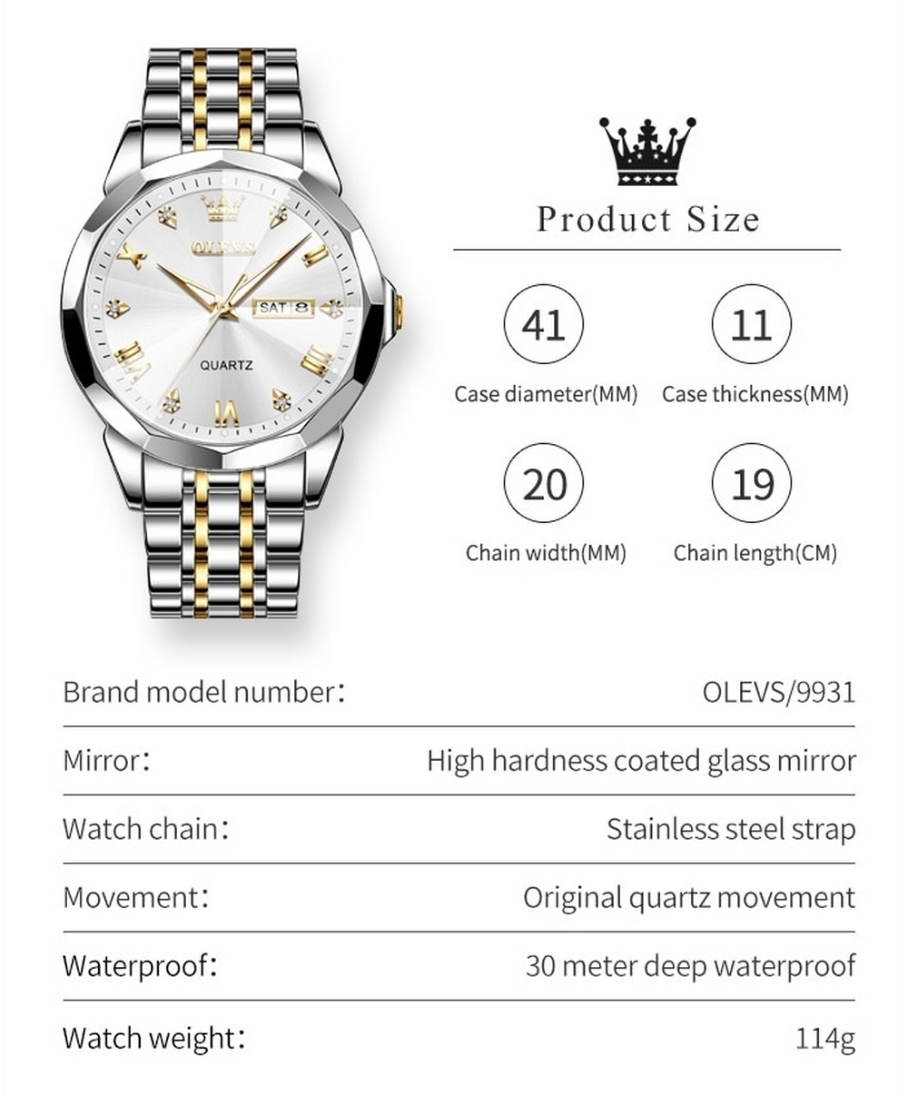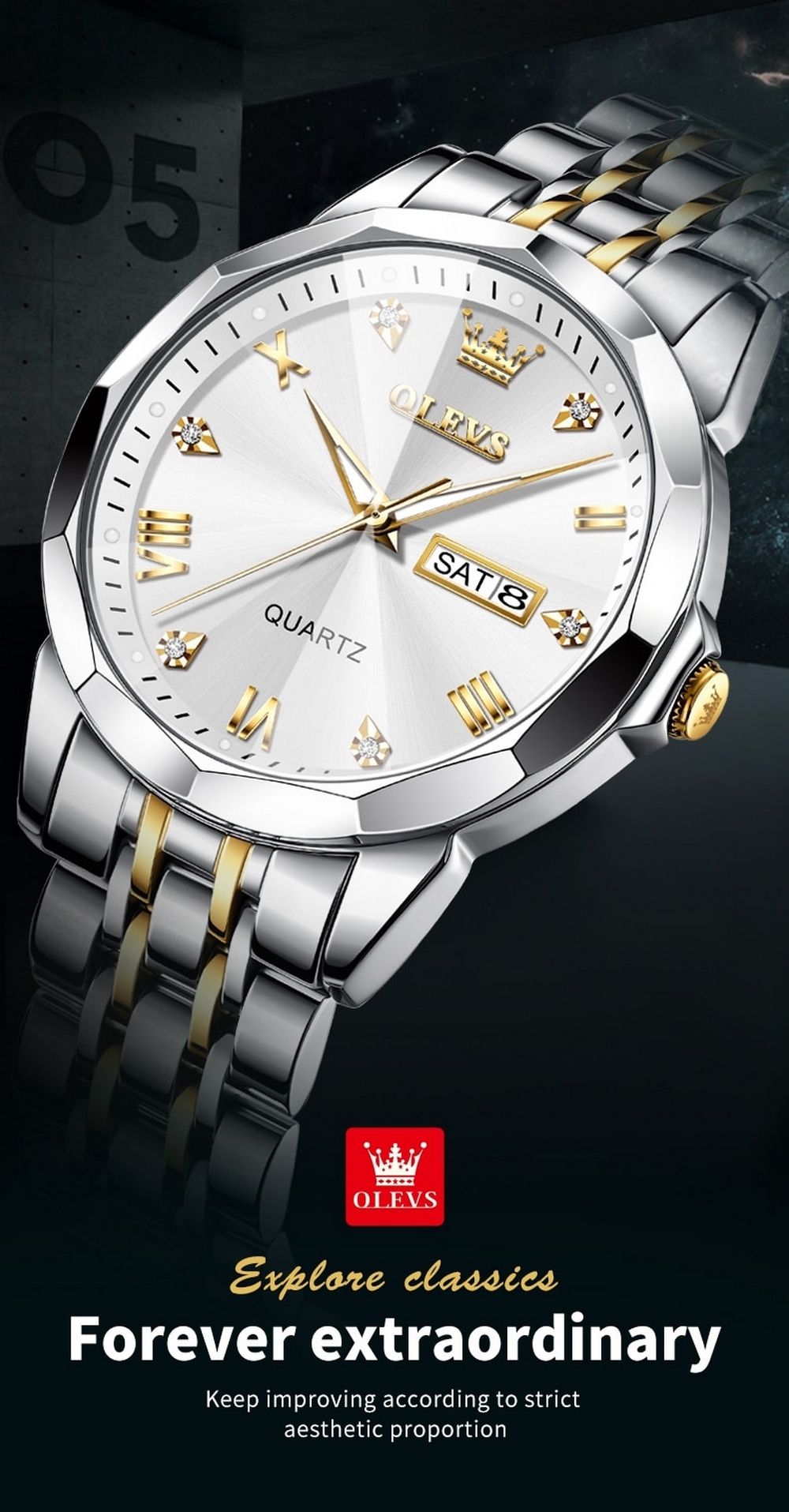 OLEVS – MONTRE 3D DIAMOND GOLD
